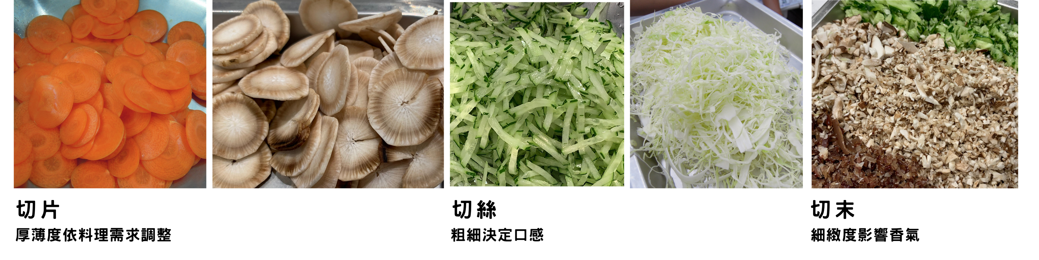 餐點上常用到的「切片」「切絲」「切末」